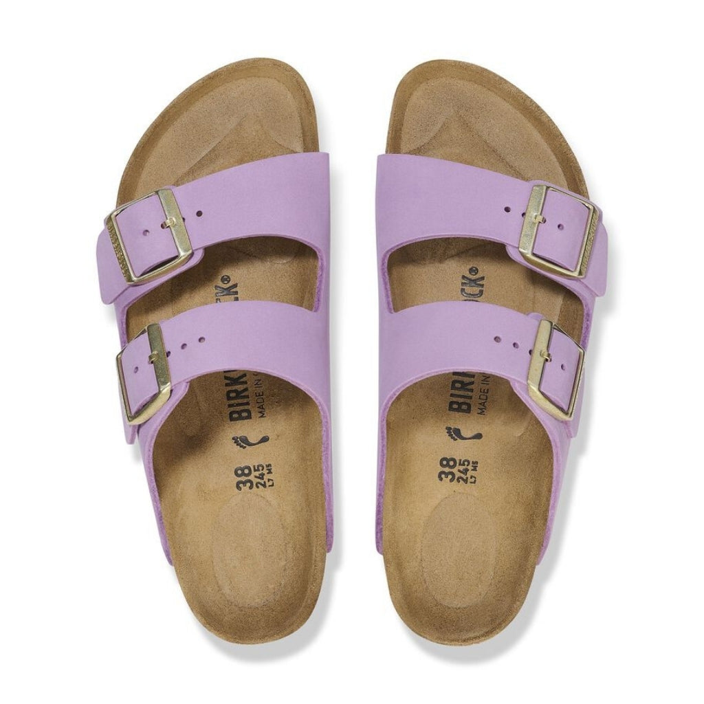 The Birkenstock Arizona in Crocus Nubuck Leather is a timeless classic, offering legendary comfort and effortless style. Crafted with a smooth nubuck leather upper and a contoured cork-latex footbed, this sandal moulds to your feet for a truly custom fit.
